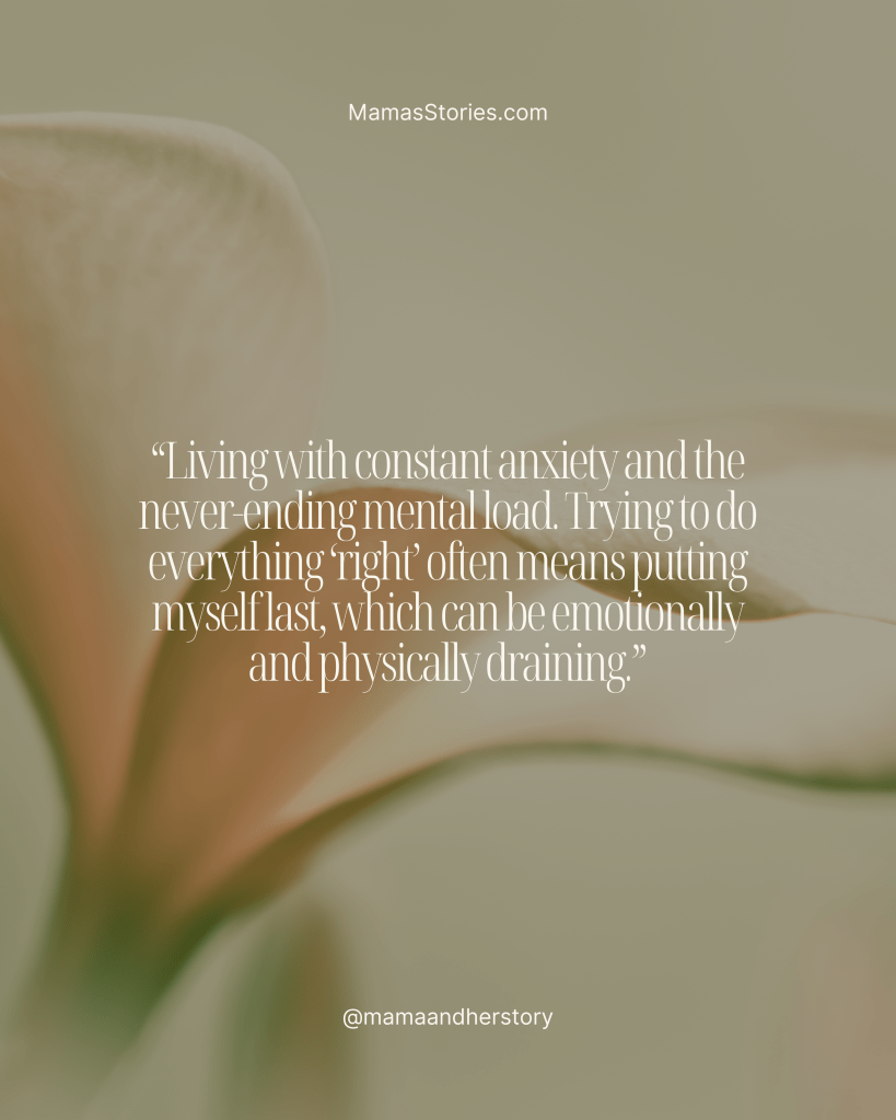 The most frequently mentioned challenge was not physical or logistical, but emotional. Many mothers described a constant mental load — worry, self-doubt, guilt, and responsibility that never truly leaves them.