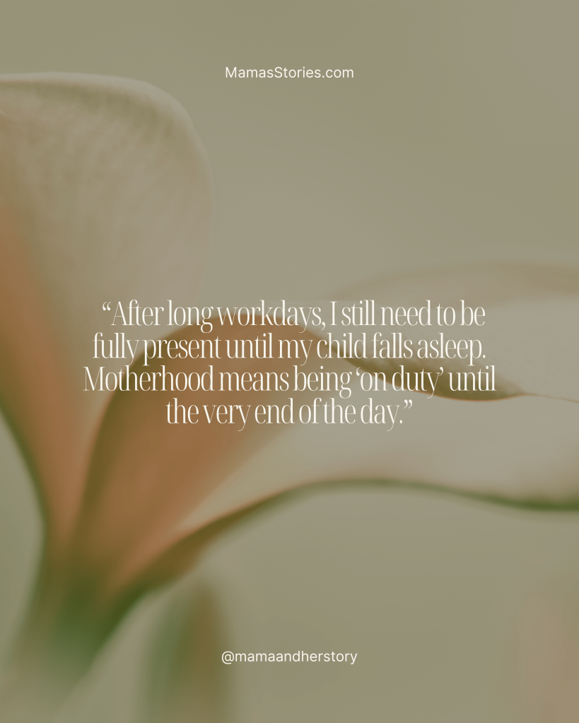 Some mothers mentioned sleep deprivation and constant responsibility as a huge challenge. The work of motherhood, many noted, does not end — even after long days.